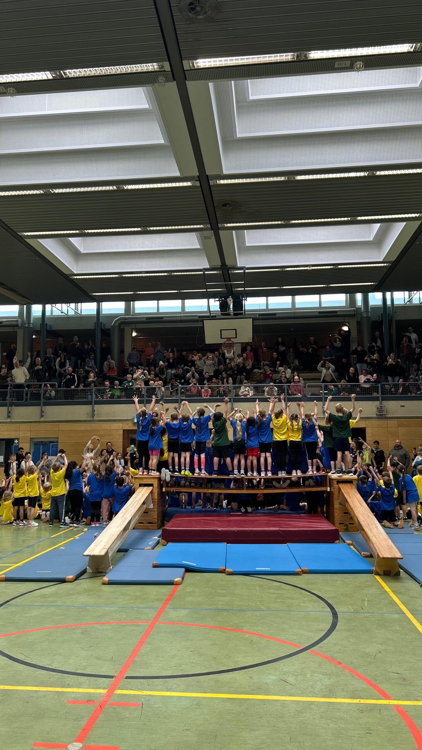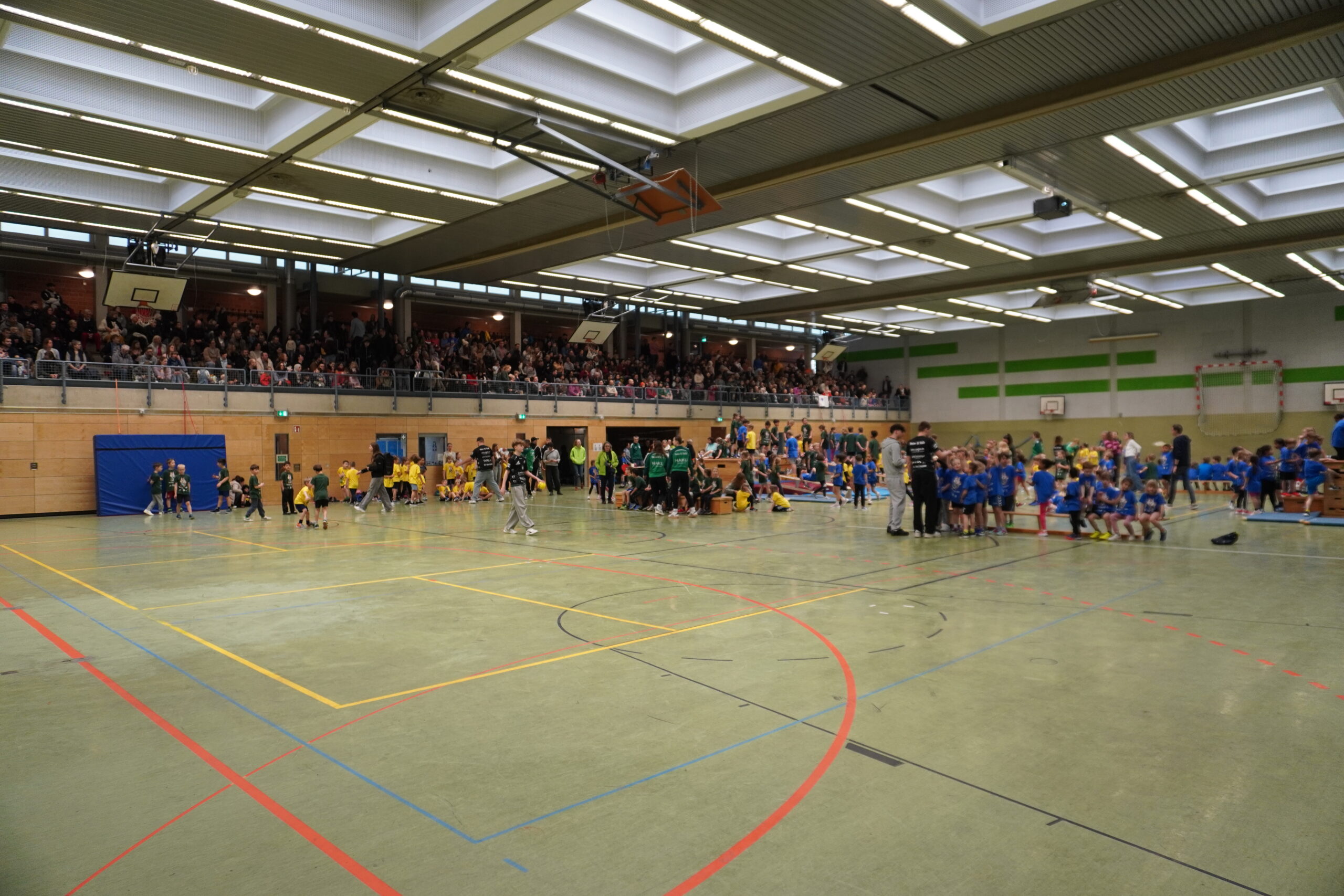 Beim Abschlussturnier traten die Klassen in spannenden Spielen gegeneinander an und zeigten voller Stolz ihr Können vor zahlreichen Zuschauern. Die Tribüne war bis auf den letzten Platz gefüllt: Eltern, Großeltern und Freunde sorgten für eine stimmungsvolle Kulisse. Auch abseits des Spielfelds war bestens für das leibliche Wohl gesorgt – die Cafeteria bot unter anderem Getränke, Brezeln, Kuchen und frische Waffeln an.